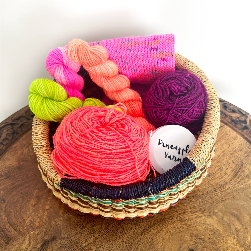 New in the shop! This handwoven project basket is the perfect size for holding your smaller projects, scrap yarn, and notions. Also makes a beautiful gift or basket for your home! Each basket measures approximately 7-8" diameter x 3" tall (20 x 7 cm).